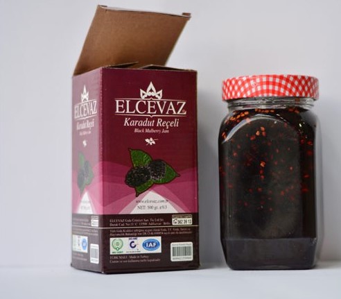 Ekşi Kara Dut ağaçları 8-10 metre boyunda olurlar. Bitlis'in Adilcevaz ilçesinde hemen hemen her bahçede bir tane bulunan Kara Dut ağacının meyveleri koyu mor ya da kara renkli olur. Olgunlaşınca 2-3 cm uzunluğunda çok sayıda bileşik meyveden oluşan kara dutların tek tek toplamanın meşakkatli olması bu meyvenin sanayi üretimine girmesini engelliyor. Başta boğaz iltihapları olmak üzere, tansiyon ve şeker hastalıklarına iyi geldiği bilinen Ekşi Kara Dut Reçeli ELCEVAZ GIDA'nın reçel çeşitleri arasında yerini almıştır. Ağaçlardan özenle toplanan dutlar taze olarak ayıklama ve temizleme işleminden geçtikten sonra, özel kaplarda tabii şeker ile geleneksel usulde, kimyasal hiçbir katkı maddesi olmaksızın doğal yöntemlerle reçel haline getirilip cam kavanozlarlada tüketime sunulur.